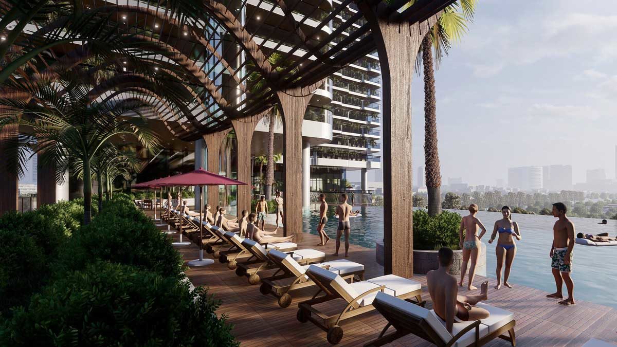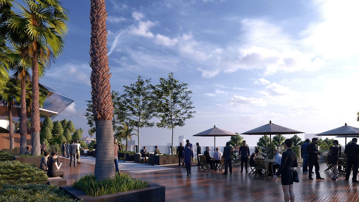 Khu vườn nhiệt đới kết hợp cùng hồ điều hòa và tổ hợp bungalow “sàn tắm nắng” có diện tích khủng lên tới hàng chục nghìn m2 diện tích. Thêm vào đó là nhiều tuyến phố đi bộ được xây, không chỉ dưới chân tòa nhà mà còn lơ lửng ở cả trên cao. Đây thực sự là không gian lý tưởng, nâng tầm đẳng cấp sống cho cộng đồng dân cư Sunshine Horizon.