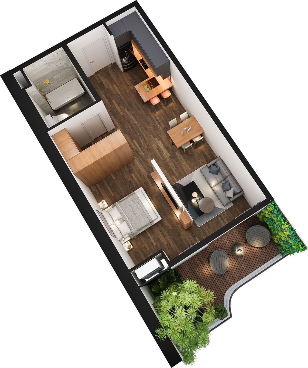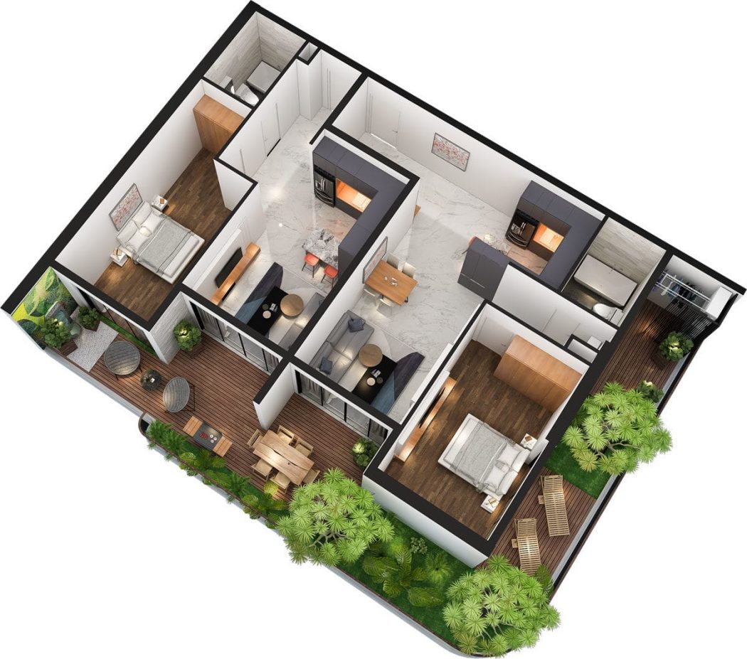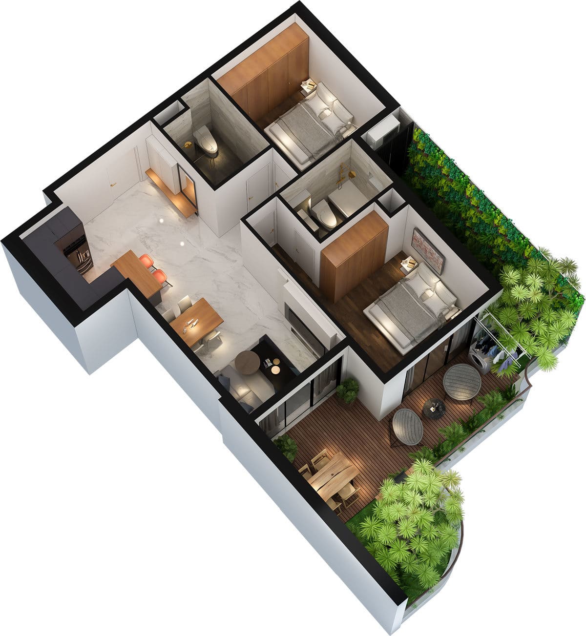 | Căn hộ 2 phòng ngủ | 45% | 71,8m2 | |