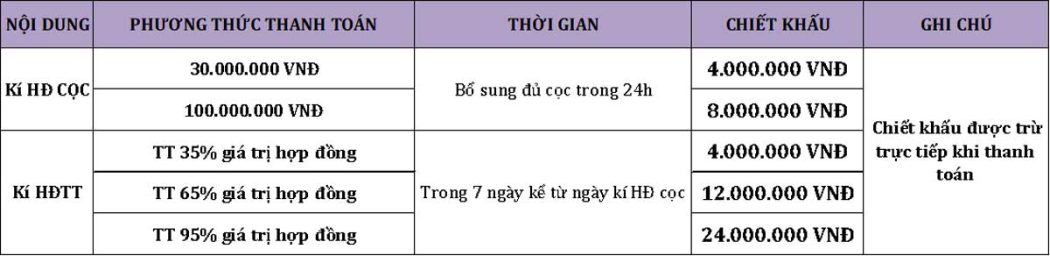 | TỔNG THANH TOÁN | 100% | 100% | 100% | |