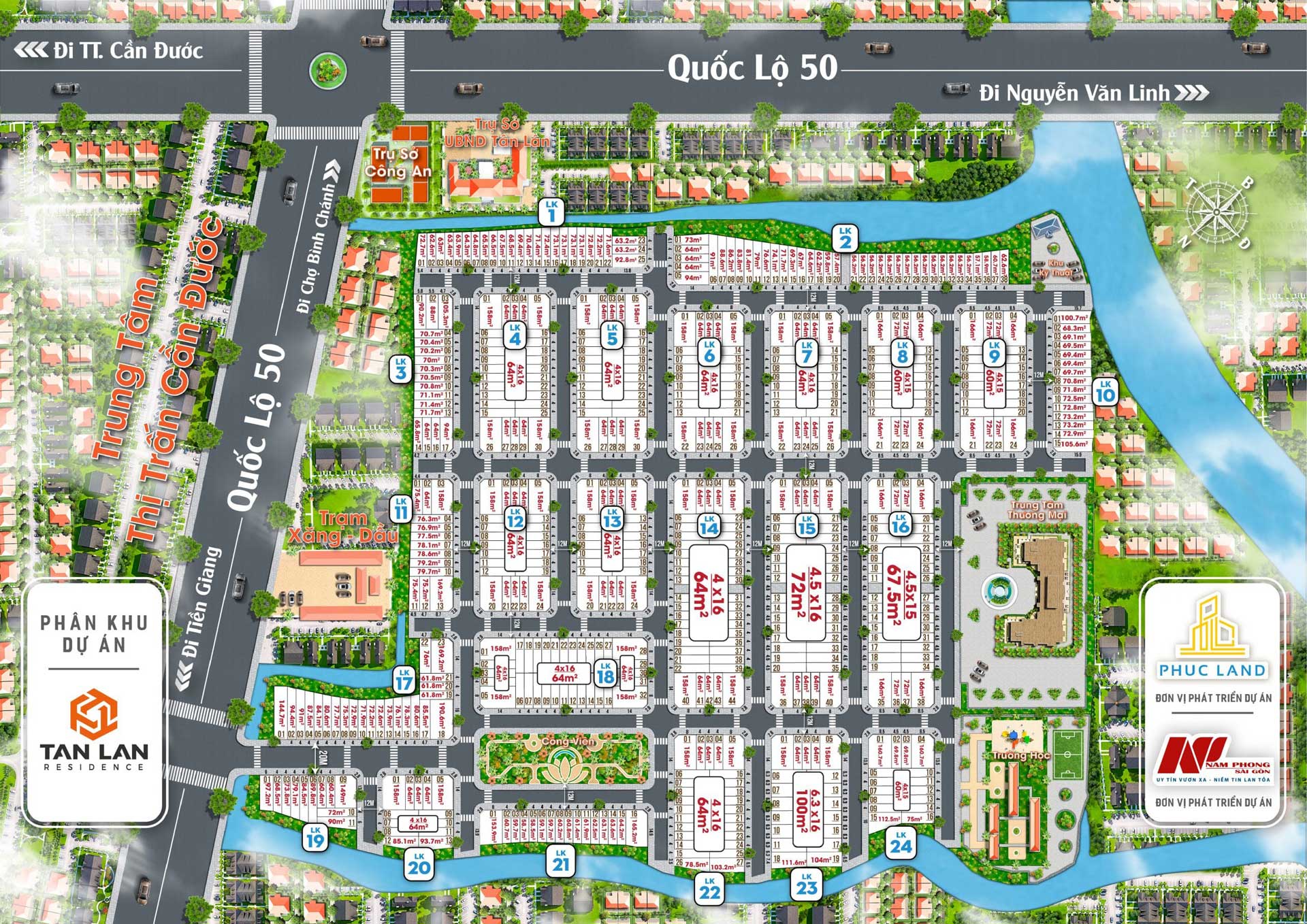 Tân Lân Residence là dự án đất nền tọa lạc ngay trên Mặt tiền đường Đường Quốc Lộ 50, Xã Tân Lân, Huyện Cần Đước, Tỉnh Long An. Dự án do Công Ty CP Đầu Tư Thương Mại Địa ốc Phúc Land làm chủ đầu tư với tổng diện tích toàn khu hơn 9,5 ha. Dự án Khu dân cư Tân Lân Residence nằm trên trục đường QL50, trục chính kết nối Cần Đước với Tp.HCM. Chính vì thế mà tiềm năm phát triển của Dự án là rất lớn, với “chính sách giãn dân” của TP.HCM thì trong 1 vài năm tới dân số sẽ phủ kín khu vực này.