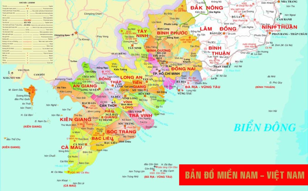 BẢN ĐỒ HÀNH CHÍNH KHU VỰC MIỀN NAM BỘ