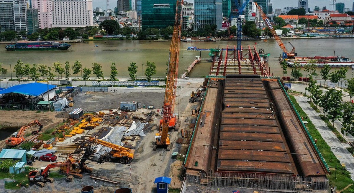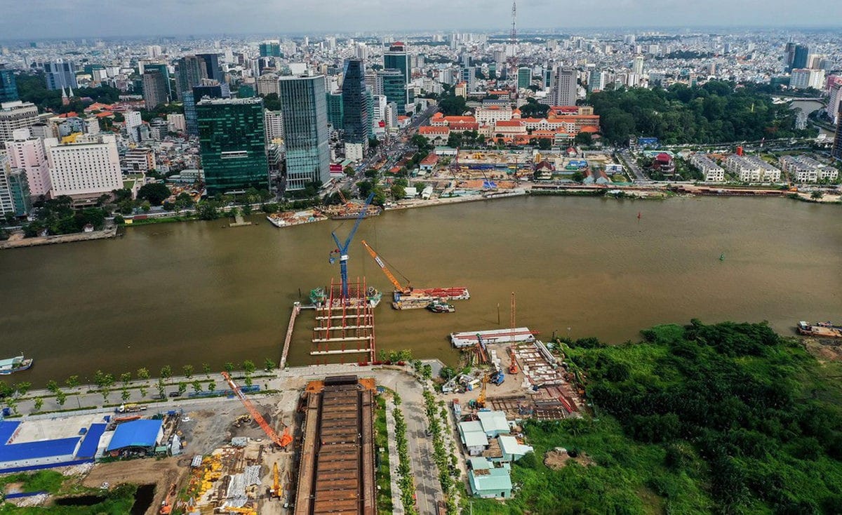 Do không vướng việc giải phóng mặt bằng nên tốc độ thi công các hạng mục bên phía Thủ Thiêm Quận 2 được đẩy nhanh
