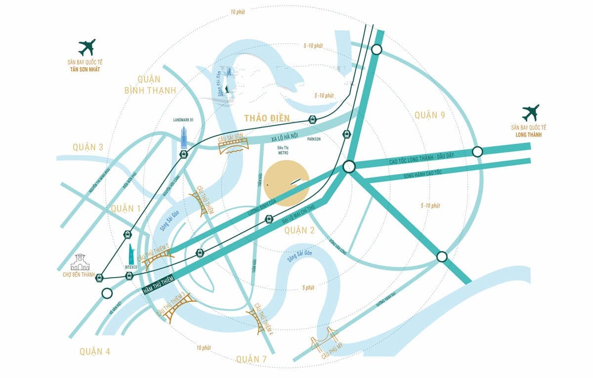 - Vị trí dự án: Điểm đầu giao lộ Tôn Đức Thắng – Lê Duẫn, Quận 1 & Điểm cuối là Đại lộ Vòng Cung (Tuyến R1), Quận 2