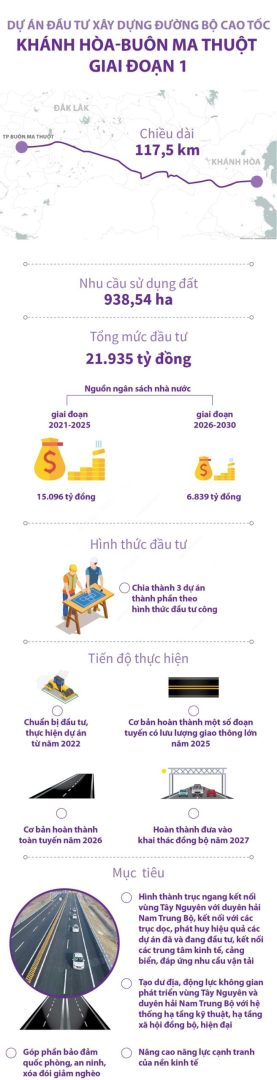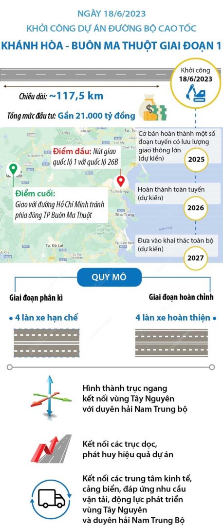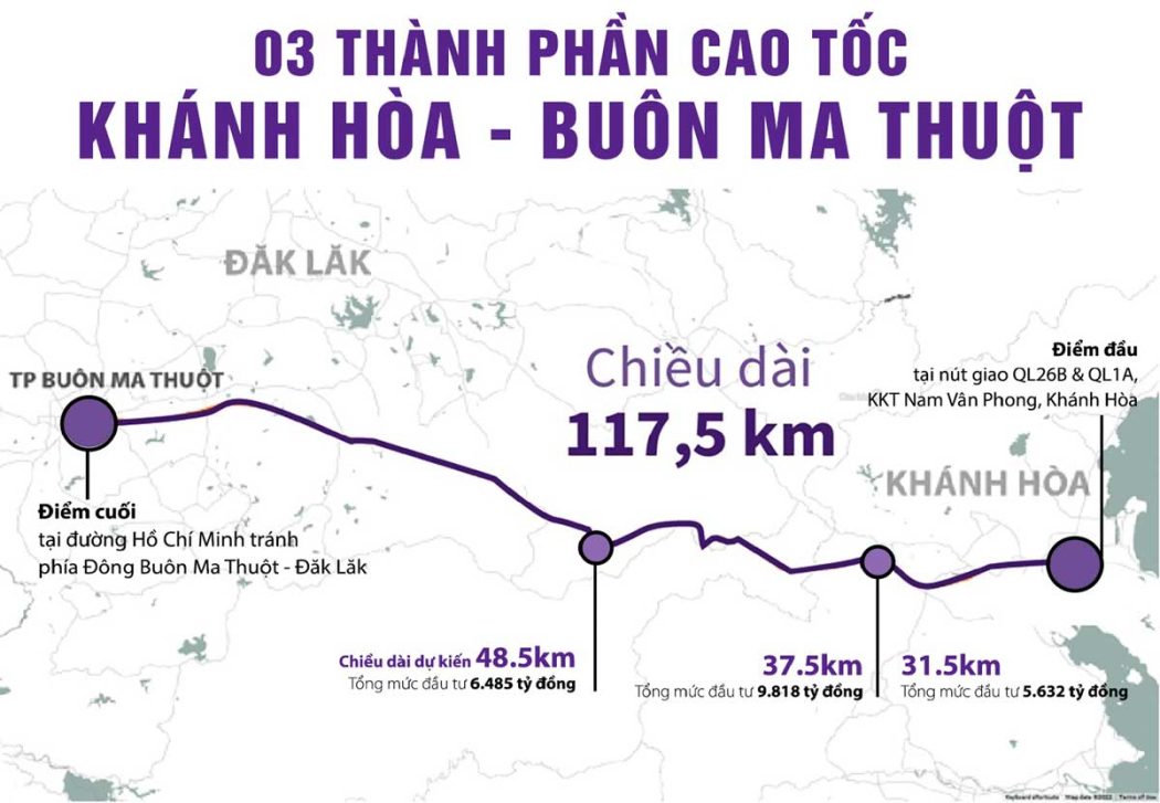 Cao tốc Khánh Hòa – Buôn Ma Thuột có tổng chiều dài hơn 117km, được chia làm 3 thành phần với tổng mức đầu tư trên 20.000 tỷ đồng