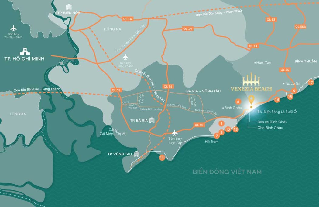 VỊ TRÍ DỰ ÁN VENEZIA BEACH HỒ TRÀM BÌNH CHÂU